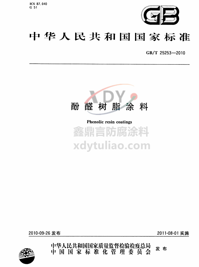 GB/T 25253-2010酚醛樹脂涂料標準是小編按照紙質版GB/T 25253-2010酚醛樹脂涂料一個字一個字碼出來的,屬于原文照搬請放心參考。