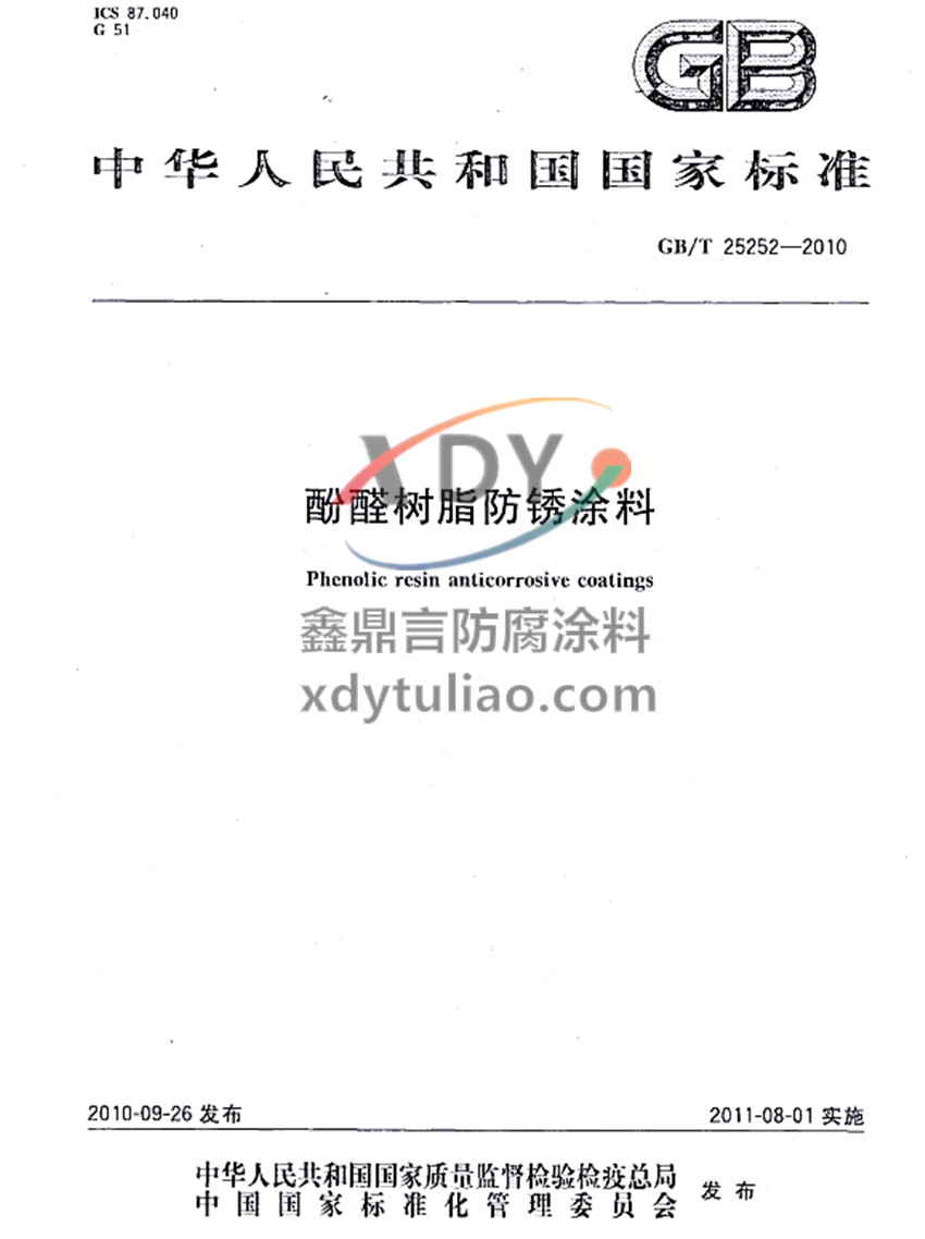 酚醛樹脂防銹涂料國家標準GB/T 25252-2010