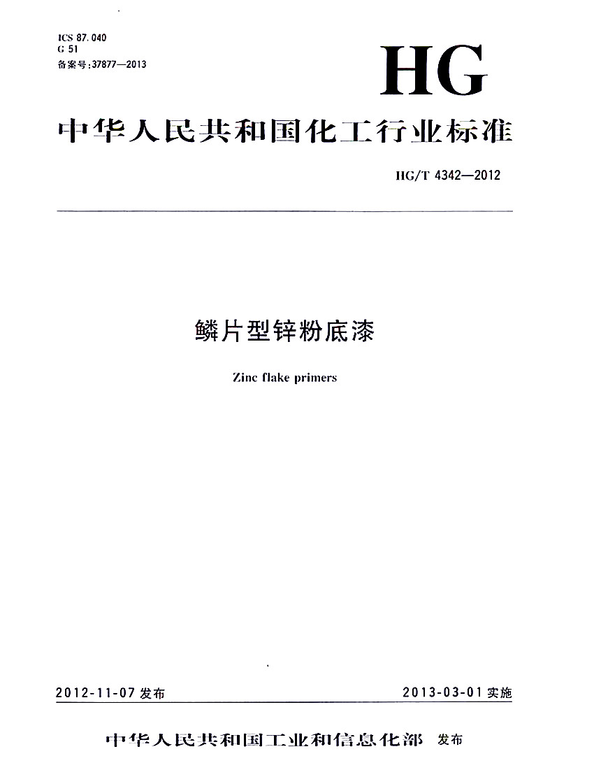 HG/T 4342-2012鱗片型鋅粉底漆標準-石家莊博凱環氧富鋅底漆廠家