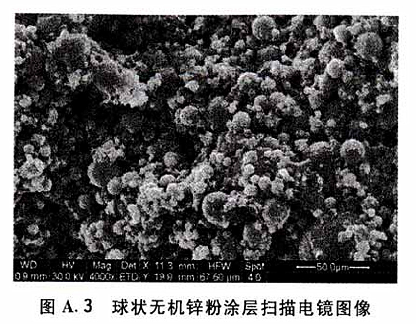 圖A.3  球狀無機鋅粉涂層掃描電鏡圖像
