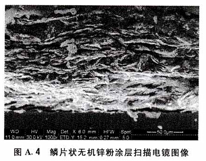圖A.4  鱗片狀無機鋅粉涂層掃描電鏡圖像